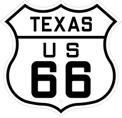 US 66 cobria 178 milhas (286km) no Panhandle do Texas, viajando numa linha este-oeste entre Glenrio (cidade localizada no Novo México e no Texas) e Texola.[48] Adrian, no Panhandle ocidental, era notável como o ponto médio da rota. A leste dali, a auto-estrada passou por Amarillo (famoso pelo Cadillac Ranch), Conway, Groom, e Shamrock.