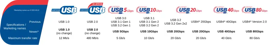USB 5Gbps | USB 10Gbps | USB 20Gbps | USB 40Gbps |