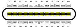 | Conector tipo C | Apenas compatibilidade com versões anteriores | ![]() (Ampliado para mostrar detalhes) | |||||||