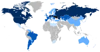 ![]() Mapa da diáspora ucraniana ao redor do mundo. | |