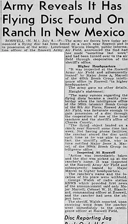- ↑ David Rudiak. «Summary of Roswell Press Reports». Roswell Proof What really happened. Consultado em 12 de setembro de 2017