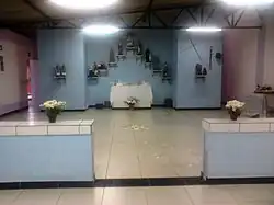 Os terreiros ou centros constituem a principal unidade organizacional da Umbanda. Esses espaços funcionam simultaneamente como locais de culto, atendimento religioso e sociabilidade comunitária. Sua estrutura física e simbólica varia conforme a tradição adotada, podendo incluir altares, imagens religiosas, elementos naturais e áreas destinadas às práticas rituais e mediúnicas.[62]