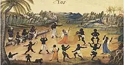 As primeiras comunidades religiosas afro-brasileiras que se têm documentadas surgiram ainda no século XVII. É provável que a mais antiga documentação de práticas rituais africanas no Brasil seja uma pintura de Zacharias Wagener datada, no mais tardar, de 1641[21]. Praticadas majoritariamente por escravizados, formando comunidades religiosas e práticas de culto ficaram conhecidas como Calundu.[22] Os Calundus surgiram a partir das chamadas rodas de batuques, onde os escravizados dançavam, tocavam atabaques em seus momentos de folga ao redor das senzalas.[22] Eram ostensivamente perseguidos pelas autoridades civis e colonizadores portugueses.[23] Existia no Calundu o sincretismo entre as crenças africanas, com Pajelança indígena e Catolicismo.[22]