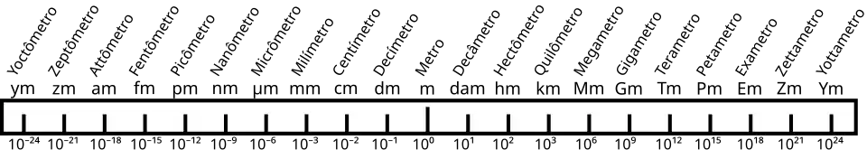 - zeptômetro (zm): 10−21 metros.