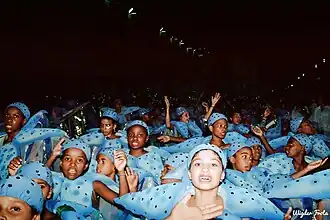 Ala de crianças da Tijuca no carnaval de 1992 com fantasias de estrelas do mar.