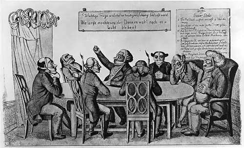 O surgimento do nacionalismo alemão, estimulado pela experiência dos alemães no período napoleónico e, de início, aliado ao liberalismo, alterou as relações políticas, sociais e culturais no interior dos estados germânicos.[13] Neste contexto, pode-se observar a sua origem na experiência dos alemães no período napoleónico.[14] As organizações estudantis Burschenschaft, e as demonstrações populares como aquelas ocorridas no Castelo de Wartburg, em outubro de 1817, contribuíram para um crescente sentimento de unidade entre os falantes de alemão da Europa Central. Além disso, as promessas implícitas e, por vezes, explícitas, feitas durante a guerra de libertação, criaram uma expectativa de soberania popular e de maior participação no processo político; no entanto, assim que a paz foi alcançada, estas promessas caíram no esquecimento. A agitação provocada pelas organizações estudantis, levaram a que alguns líderes conservadores, como Klemens Wenzel von Metternich, a recear o aumento do sentimento nacional; o assassinato do dramaturgo alemão August von Kotzebue, em março de 1819, por um estudante radical que defendia a unificação, foi seguido pela proclamação dos Decretos de Carlsbad em 20 de setembro de 1819, os quais impediram a liderança intelectual do movimento nacionalista.[15] Metternich conseguiu aproveitar o ultraje do assassinato para consolidar a legislação que permitiria, ainda mais, limitar a imprensa e constranger a ascensão dos movimentos nacionalistas e liberais. Como consequência, estes decretos forçaram o Burschenschaften a funcionar na obscuridade, restringiram a publicação de material nacionalista, alargaram a censura da imprensa e correspondência privada, e limitaram o discurso académico ao proibir os professores universitários de encorajar as discussões nacionalistas. Os decretos foram o tema do panfleto de Johann Joseph von Görres, Teutschland [arcaico para Deutschland] und die Revolution (Alemanha e a Revolução) (1820), no qual concluía que era impossível, e indesejável, reprimir a livre expressão da opinião pública através de medidas reaccionárias.[16]