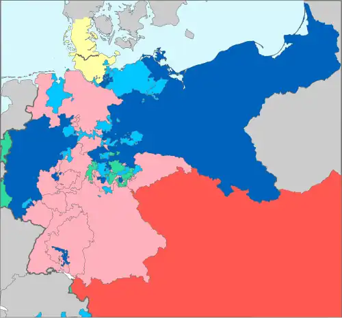 Três acontecimentos foram fundamentais para a unificação política e administrativa da Alemanha. O primeiro, a morte de Frederico VII da Dinamarca, sem sucessores masculinos, deu origem à Segunda Guerra do Schleswig em 1864. O segundo, a Unificação da Itália, forneceu à Prússia um aliado contra a Áustria, na Guerra Austro-Prussiana de 1866. Por fim, a França — temendo um cerco dos Hohenzollern — declarou guerra à Prússia em 1870, dando origem à Guerra Franco-Prussiana. Através da liderança diplomática e política de Bismarck, a reorganização militar de von Roon, e a estratégia militar de von Moltke, a Prússia demonstrou que nenhum dos signatários europeus do tratado de paz de 1815 podia garantir a esfera de influências da Áustria na Europa Central, conseguindo assim a hegemonia da Prússia sobre a Alemanha e colocando um ponto final no debate sobre o dualismo.[65]