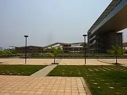 A arquitectura do campus é elíptica, com os edifícios equidistantes da biblioteca central, dispostos de forma a optimizar a iluminação e ventilação natural.[18]