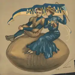 O grito de guerra da Universidade de Michigan, o The Victors, foi criado pelo estudante Louis Elbel em 1898, e foi lançado no minuto da final do campeonato de futebol americano contra a Universidade de Chicago, em que a UM ganhou o jogo. John Philip Sousa fez uma declaração na qual dizia que o grito da UM "é o maior e melhor grito de guerra de universidade já escrito."[46] A canção (grito de guerra) se refere a universidade como a "Campeã do Oeste". Na época, a UM fazia parte da Conferência do Leste, que mais tarde se tornaria a Big Ten Conference.