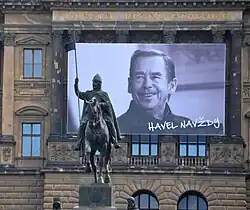 Uma grande tapeçaria de Václav Havel com a legenda Havel para sempre foi inaugurada na Praça de Venceslau em 17 de novembro de 2014, no 25º aniversário da Revolução de Veludo.