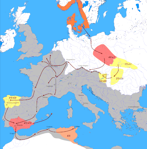 Os vândalos entraram na Hispânia em 409, e na África em 429.