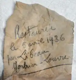 De início a ideia do conservador-chefe do museu, Bernard Lange, era restaurar a obra integralmente, recriando todas as partes que faltavam, prática comum na época, mas como a posição dos braços não podia ser determinada com segurança, resolveu-se fazer um restauro apenas ligeiro na ponta do nariz, no lábio inferior, no dedão do pé direito e em algumas dobras do manto, acrescentando-se também o pé esquerdo e uma base retangular para sustentá-lo.[13][6][12]