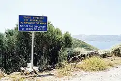A história da sua descoberta e aquisição não é clara, e circularam muitas versões que discordam em vários detalhes importantes,[4] tanto que já foi dito ironicamente que se gastou mais tinta tentando elucidar essa controvérsia do que derramou-se sangue por Helena de Troia.[5] Segundo Marianne Hamiaux, a escultura foi desenterrada em 8 de abril de 1820 pelo camponês Yorgos Kentrotas, perto da cidade antiga da ilha de Milo (também conhecida como Milos ou Melos), no mar Egeu, então parte do Império Otomano. Kentrotas estava procurando pedras para construir um muro em torno do seu campo. Por acaso, um cadete naval francês, Olivier Voutier, estava com ele.[6] Aficcionado pela arqueologia, Voutier incentivou Kentrotas a continuar a cavar, conforme deixou registrado: