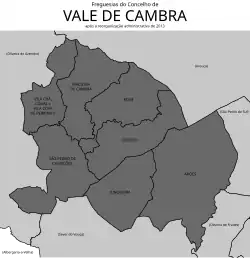 Por força da reorganização administrativa do território das freguesias ocorrida em 2013,[5] o município de Vale de Cambra está divididos em 7 freguesias: