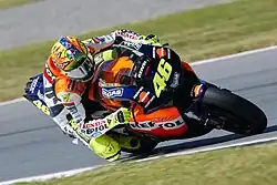 Valentino Rossi (Urbino, 16 de fevereiro de 1979[1]) é um ex-motociclista profissional e vencedor de vários títulos mundiais de MotoGP. Com 9 campeonatos mundiais de motociclismo, sendo 7 na principal categoria, estando atrás por 1 título, de Giacomo Agostini que tem 8 na principal categoria, no seu palmarés é considerado um dos mais bem sucedidos desportistas e pilotos de motociclismo de todos os tempos. Após uma era de épocas dominadas pelo piloto, em 2006 perdeu a chance de obter o oitavo título, terminando o campeonato em segundo lugar. Com poucas corridas para o final da temporada de 2007, perdeu novamente o título, desta vez para o australiano Casey Stoner. Entretanto, em 2008, voltou a subir ao pódio, conquistando o oitavo campeonato mundial; e em 2009 repetiu o feito, ficando com 9 campeonatos mundiais.