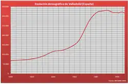 A população de Valladolid teve crescimento sempre durante o século XX. Esse grande crescimento demográfico pode ser notado vendo a migração doméstica e internacional. Porém, na década de 1990 a cidade começou a experimentar uma estabilidade no crescimento. Esse fenómeno, foi causado pelo crescimento de subúrbios satélites no centro da cidade. Uma nova onda de imigração atingiu Valhadolid nos últimos anos, que não só retomou o índice de crescimento.