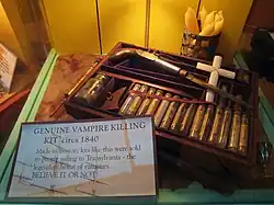 Kit para caçar vampiros, fabricado em Boston, cerca de 1840