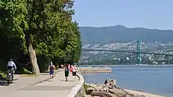 Vancouver tem um dos maiores parques urbanos da América do Norte, o Parque Stanley, que cobre 404,9 hectares.[47] As Montanhas North Shore dominam a paisagem urbana e, em um dia claro, a vista panorâmica inclui o Monte Baker, um vulcão coberto de neve no estado de Washington, Estados Unidos, a sudeste; a Ilha de Vancouver, através do Estreito de Geórgia, a oeste e sudoeste; e a Ilha Bowen a noroeste.[48]