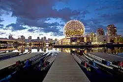 Skyline do Centro de Vancouver Canada Place Stanley Park e Ponte Lions Gate Science World (Vancouver) Galeria de Arte de Vancouver Gastown Harbour Centre | |