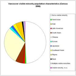 Vancouver é uma das cidades mais multiculturais do mundo. Os ingleses, escoceses e irlandeses historicamente eram os maiores grupos étnicos na cidade, a influência social e cultural britânica e irlandesa ainda são muito visíveis em algumas áreas, principalmente em South Granville e Kerrisdale. Os alemães são o segundo maior grupo étnico europeu em Vancouver. Os chineses são visivelmente a maior minoria étnica da cidade. Vancouver também possui uma das comunidades de língua chinesa mais diversas do país, uma vez que diversos dialetos chineses são falados na cidade. A cidade possui a segunda maior Chinatown da América do Norte. Apenas a Chinatown de San Francisco é maior. Vancouver também possui diversos bairros multiculturais, tais como o Punjabi Market (sul-asiáticos), Little Italy (italianos), Little India (indianos), Greektown (gregos), Japantown (japoneses), Commercial Drive, e diversas Koreatowns (coreanos). Placas de trânsito bilingues podem ser vistas nesses centros de concentração étnica. Vancouver e sua região metropolitana também possui a maior comunidade aborígene da Colômbia Britânica.[carece de fontes]