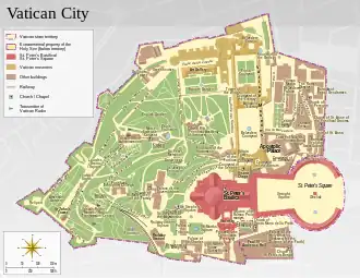 - ↑ «Map of Vatican City». saintpetersbasilica.org. Consultado em 11 de outubro de 2009
