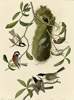 Em 1811, os naturalistas Thomas Nuttall (1786–1859) e John Bradbury (1768–1823) viajaram pelo rio Missouri documentando e desenhando a vida vegetal e animal.[84] O artista George Catlin (1796–1872) pintou pinturas precisas da cultura nativa americana. O artista suíço Karl Bodmer criou paisagens e retratos atraentes.[85] John James Audubon (1785–1851) é famoso por classificar e pintar nos mínimos detalhes 500 espécies de pássaros, publicado em Birds of America.[86]