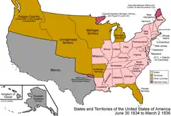À medida que os colonos chegavam, os distritos fronteiriços tornaram-se inicialmente territórios, com uma legislatura eleita e um governador nomeado pelo presidente. Então, quando a população atingiu 100.000 habitantes, o território solicitou a condição de Estado.[58] Os homens da fronteira normalmente abandonaram as formalidades legalistas e os direitos de voto restritivos favorecidos pelas classes superiores orientais e adoptaram mais democracia e mais igualitarismo.[59]