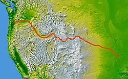 O mais famoso dos exploradores foi John Charles Frémont (1813-1890), um oficial do Exército no Corpo de Engenheiros Topográficos. Ele exibiu um talento para a exploração e um gênio na autopromoção que lhe deu o apelido de "Marcador do Oeste" e o levou à nomeação presidencial do novo Partido Republicano em 1856.[87] Ele liderou uma série de expedições na década de 1840 que responderam a muitas das questões geográficas pendentes sobre a região pouco conhecida. Ele atravessou as Montanhas Rochosas por cinco rotas diferentes e mapeou partes do Oregon e da Califórnia. Em 1846-1847, ele desempenhou um papel importante na conquista da Califórnia. Em 1848-1849, Frémont foi designado para localizar uma rota central através das montanhas para a ferrovia transcontinental proposta, mas sua expedição terminou quase em desastre quando se perdeu e ficou presa por uma forte neve.[88] Seus relatórios misturavam narrativas de aventuras emocionantes com dados científicos e informações práticas detalhadas para viajantes. Isso despertou a imaginação do público e inspirou muitos a seguirem para o oeste. Goetzman diz que foi "monumental em sua amplitude, um clássico da exploração da literatura".[89]