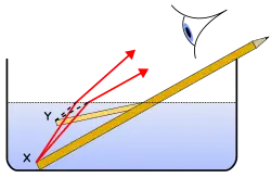 Representação esquemática da refração da luz
