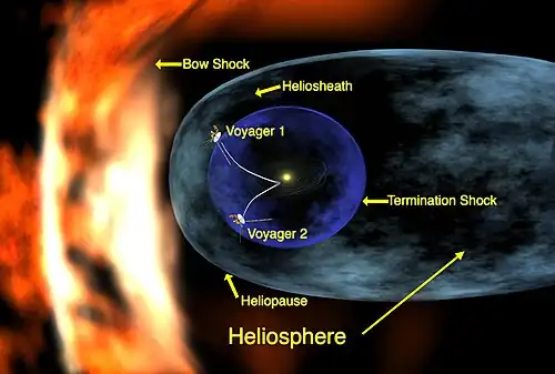 - ↑ «Voyager 2 finds solar system's shape is 'dented'». Reuters. 11 de Dezembro de 2016 – via Reuters