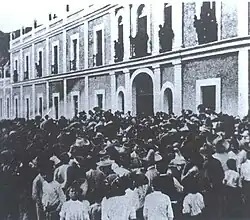 Trabalhadores protestando em frente a Fábrica de tecidos de Río Blanco, Veracruz em 1907.
