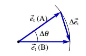 Observe-se que a derivada do vetor tangencial não é nula, porque esse vetor não é necessariamente igual em diferentes instantes. A figura ao lado, mostra como calcular a derivada de