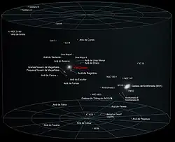- ↑ Eva K. Grebel. «The Local Group» (em inglês). Universidade de Washington. Consultado em 25 de janeiro de 2014. Cópia arquivada em 25 de janeiro de 2014
