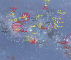 - ↑ «Plan Views of the Milky Way Galaxy» (em inglês). Universidade de Calgary. Consultado em 5 de fevereiro de 2014. Cópia arquivada em 5 de fevereiro de 2014