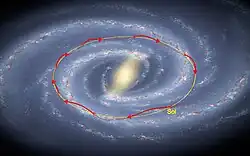 Na mesma década, Jan Oort e Bertil Lindblad observaram que o Sol não ocupa uma posição fixa na galáxia, mas orbita ao redor de seu centro, deduzindo a partir do movimento próprio das estrelas nas proximidades do Sistema Solar. Embora algumas dessas estrelas apresentem um movimento irregular, a análise de uma grande quantidade permitiu concluir que se moviam em uma mesma direção, assim como o Sol, ao redor do centro da Via Láctea.[128][129]