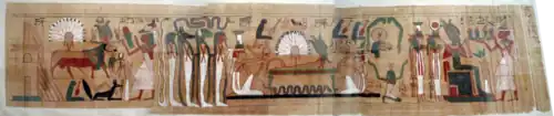 Obter a recompensa no outro mundo era uma verdadeira provação, exigindo um coração livre de pecados e a capacidade de recitar encantamentos, senhas e fórmulas do Livro dos Mortos. No Salão das Duas Verdades, o coração do falecido era pesado contra uma pena Shu de verdade e justiça, retirada do toucado da deusa Maet.[7] Se o coração fosse mais leve que a pena, a alma poderia continuar, mas, se fosse mais pesada, era devorada pelo demônio Ammit.