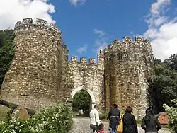 (Simbolizam o Castelo, e a cor vermelha significa a sua extraordinária importância histórica nas lutas da independência nacional).