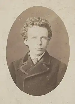 Van Gogh era uma criança séria e pensativa.[20] Tendo sido educado em casa pela sua mãe e pela governanta, em 1860, foi enviado para uma escola na localidade e, quatro anos depois, foi colocado num internato em Zevenbergen,[21] local onde se sentiu abandonado, razão pela qual tudo fez para voltar para casa. Mas, em vez disso, os seus pais mandaram-no para uma escola secundária de Tilburgo, onde foi extremamente infeliz.[22] O seu interesse pela arte começou bem cedo, tendo sido encorajado a desenhar pela sua mãe ainda em criança.[23] Os seus primeiros desenhos eram expressivos,[21] porém, não chegavam perto da intensidade de seus trabalhos posteriores.[24] Constantijn C. Huysmans, que fora um artista bem-sucedido em Paris, dava aulas de desenho aos estudantes em Tilburgo. Sua filosofia era rejeitar a técnica em favor da captura das impressões das coisas, particularmente a natureza e os objetos comuns. A profunda infelicidade de Van Gogh parece ter ofuscado as aulas que frequentou, já que, aparentemente, tiveram poucos efeitos,[25] tendo regressado a casa repentinamente em março de 1868. Van Gogh mais tarde escreveu que sua juventude foi "austera, fria e estéril".[26]