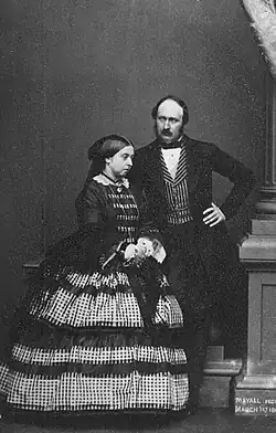 Onze dias depois da tentativa de assassinato em França, a filha mais velha de Vitória casou-se com o príncipe Frederico Guilherme da Prússia em Londres. Os dois eram noivos desde 1855, quando a princesa real Vitória tinha apenas catorze anos. O casamento foi atrasado pela rainha e pelo príncipe Alberto até a noiva completar dezassete anos.[112] A rainha e o príncipe Alberto esperavam que a sua filha e genro fossem responsáveis pela liberalização do crescente reino prussiano.[113] Vitória sentiu "o coração doente" por ver a sua filha deixar Inglaterra para passar a viver na Alemanha. "Faz-me arrepiar", escreveu ela à filha numa das suas frequentes cartas, "quando olho para todas as tuas doces, felizes e inocentes irmãs e penso que vou ter de as deixar também — uma à uma".[114] Quase um ano depois, a princesa Vitória deu à luz o primeiro neto da rainha Vitória, o futuro kaiser Guilherme II da Alemanha.