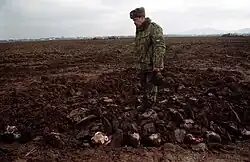 No mesmo ano, deu-se a explosão de uma bomba num centro comercial no centro de Moscovo e uma série de atentados bombistas nunca resolvidos, que vários críticos disseram ser provavelmente encenados pelo FSB sob bandeira falsa,[22] em edifícios de apartamentos de Moscovo, atribuídos a terroristas chechenos. Sob as ordens de Putin, precedidas por bombardeamentos aéreos,[23] unidades do exército russo atravessaram a fronteira para a parte chechena do país em 1 de outubro de 1999.[24] Pouco antes, combatentes chechenos e árabes tinham invadido o Daguestão, dando início à Guerra do Daguestão, que durou seis semanas, após a qual começou a Segunda Guerra da Chechénia. Enquanto político, Putin liderou as acções militares na Chechénia, como a destruição extensiva da capital Grozny, de que não restou um único edifício de pé, que foi a que mais afetou a população civil. Durante esta "guerra suja" foram verificados muitíssimos crimes de guerra, principalmente do lado russo. Civis chechenos, incluindo pessoal médico, foram alvo de ataques militares por forças russas, e centenas de civis chechenos, incluindo prisioneiros de guerra foram executados sumariamente. Mulheres e também homens eram espancados, torturados e violados, casas saqueadas e incendiadas.[25][26][27][28]