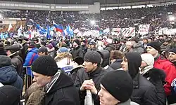 Em 12 de junho de 2013, em pleno feriado nacional, milhares de pessoas reuniram-se em Moscou para protestar contra o governo de Putin.[61] Entre as exigências, estava a libertação dos manifestantes presos nas ondas de protestos em 2011 e 2012. Alguns dos cartazes apresentavam dizeres como: "Putin, vergonha da Rússia" e "Abaixo a autocracia presidencial". Entre os manifestantes, podia-se encontrar as tendências mais variadas.[62]