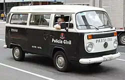 Uma Kombi da Polícia Civil de São Paulo.