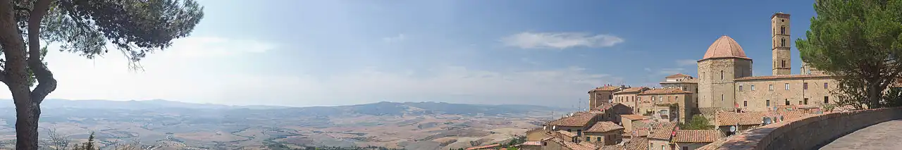 Sua origem se deu no século IX a.C., quando surgiram os primeiros povoados etruscos no alto do cume.[2] Faz fronteira com Casole d'Elsa (SI), Castelnuovo di Val di Cecina, Colle di Val d'Elsa (SI), Gambassi Terme (FI), Lajatico, Montaione (FI), Montecatini Val di Cecina, Peccioli, Pomarance, San Gimignano, também teria sido o local de nascimento do segundo papa, Papa Lino.[1][3][4] Foi lá onde possivelmente foi gravado o filme Lua Nova, da saga Crepúsculo.[1][3][4] Era o lar dos temidos vampiros Volturi.[1][3][4] Mas depois foi confirmado que as gravações das cenas de Volterra aconteceram em Montepulciano, tambem na Itália.[1][1][3][4]