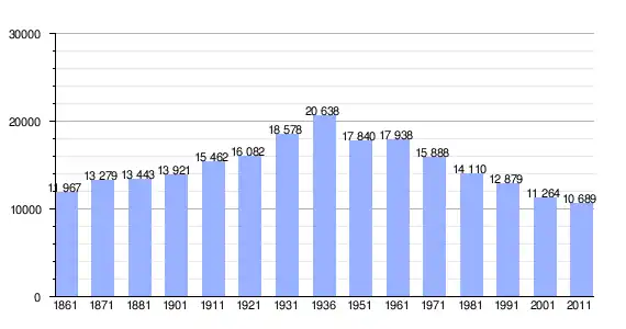 | Variação demográfica do município entre 1861 e 2011[1] |