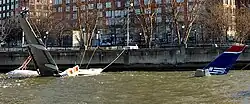 ![]() O Airbus A320 flutuando no rio Hudson. | |