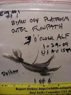 - ↑ Joan Lowy (21 de janeiro de 2009). «NTSB reports remains of what maio have been a bird in engine of airliner that landed in Hudson». Star Tribune (em inglês). Minneapolis-St. Paul, Minnesota. Associated Press. Consultado em 23 de janeiro de 2009[ligação inativa]