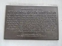 O nome da rua deriva do fato que durante o século XVII, constituiu o limite norte de Nova Amsterdam. Lá, os holandeses tinham construído uma parede de madeira e lama em 1652. A parede significou uma defesa contra possíveis ataques dos índios de Lenape, de colonizadores da Nova Inglaterra e dos ingleses, mas a verdade é que foi usada para evitar que os escravos negros fugissem da colônia. A parede foi demolida pelos Ingleses em 1699. No fim do século XVIII, os intermediários financeiros e especulatórios se encontraram para negociar informalmente junto a um plátano de Wall Street. Esta foi a origem do mercado conservado em estoque do comércio de Nova Iorque.