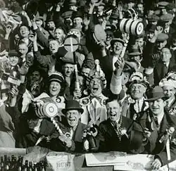 Torcedores do West Ham com seus "martelos" durante jogo da FA Cup em 1933.