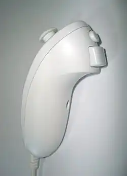 Desenhado para caber perfeitamente na mão do jogador, o Nunchuk é conectado para uma expansão ao Wii Remote e pode ser usado juntamente a ele em alguns certos jogos, como o de boxe, onde as luvas do jogo, são os dois controles ligados um ao outro.