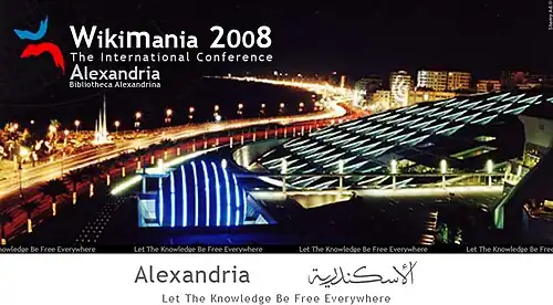 A Wikimania 2008 aconteceu em Alexandria, Egito na famosa Biblioteca de Alexandria.[9]